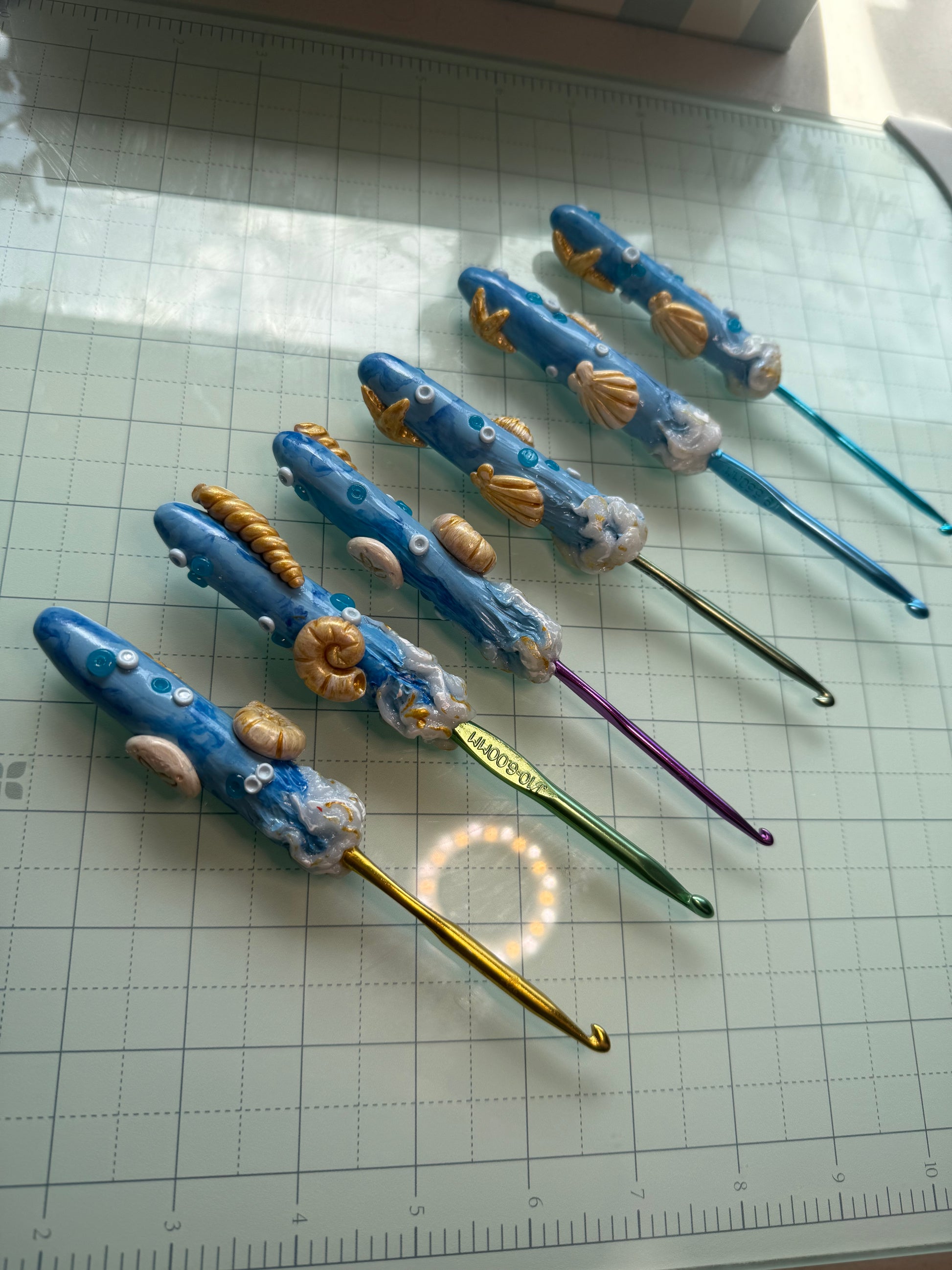Oceanic Crochet Hook Set- Handmade Polymer Clay Sculpted